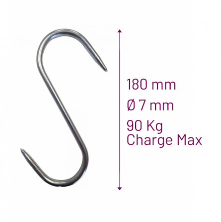 Crochet Esse en Inox alimentaire permettant de suspendre en boucherie et charcuterie les morceaux de viandes et autres préparations transformées.